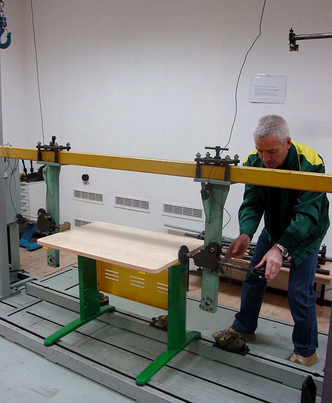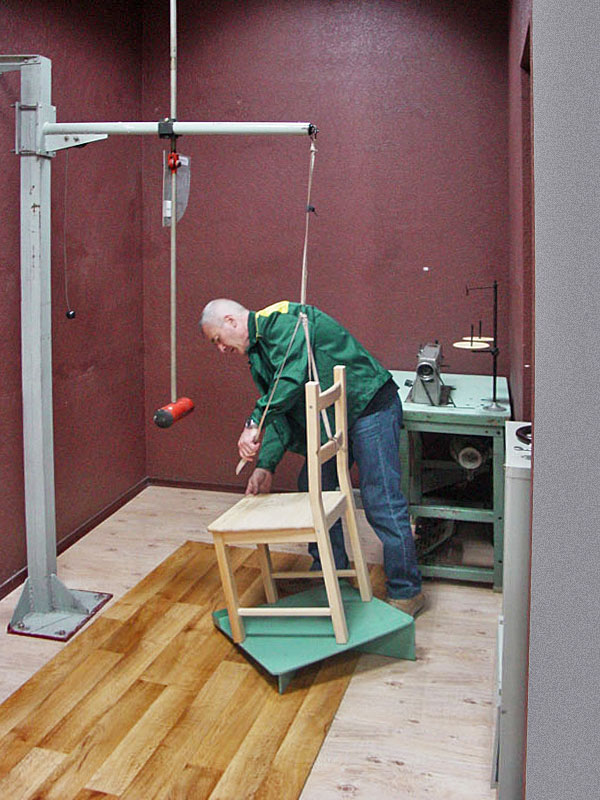 долговечность — испытание на устойчивость мебели к воздействию циклических динамических нагрузок в различных направлениях в течение заданного количества испытательных циклов;